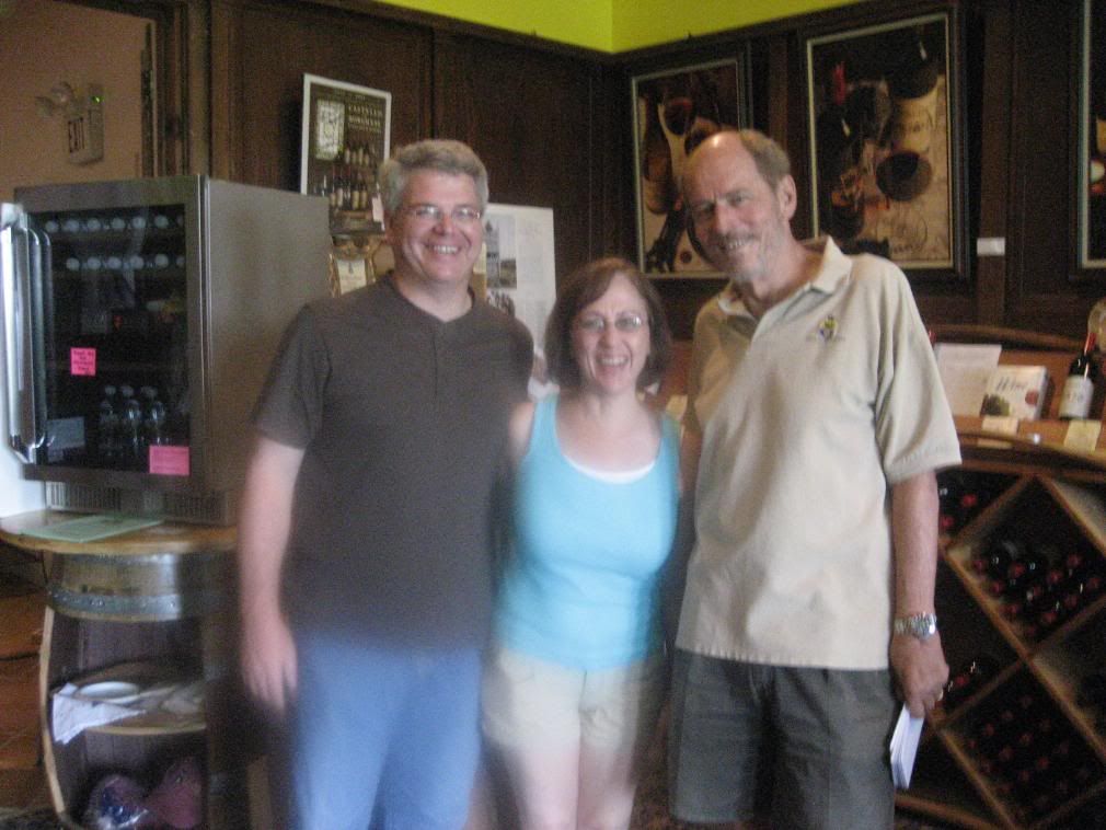 We also met his lovely wife, Ann Marie who told us about the pinot grapes nearby. She showed us the green grapes had not changed because they haven't received enough sun. A branch or cluster is hiding them from enough sun. As she says, pinot are the heartbreak grape...they can cause more problems than any of the others.